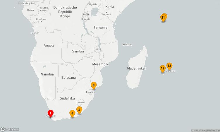 Die Route startet am 08. Dezember 2027 in Kapstadt (Südafrika) und führt Sie vom 08. Dezember 2027 bis zum 28. Dezember 2027 (20 Tage) nach Mahé / Port Victoria (Seychellen).