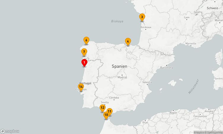 Während der Reise machen Sie Halt in den Häfen von Leixoes / Porto, Bilbao und Vigo, um das lokale Flair und die Besonderheiten der Region zu erleben.
