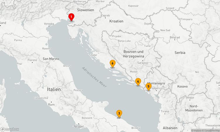Ihre Route führt Sie unter anderem zu den faszinierenden Häfen von Triest, Bari und Kotor, wo Sie die Atmosphäre und das Leben vor Ort spüren können.