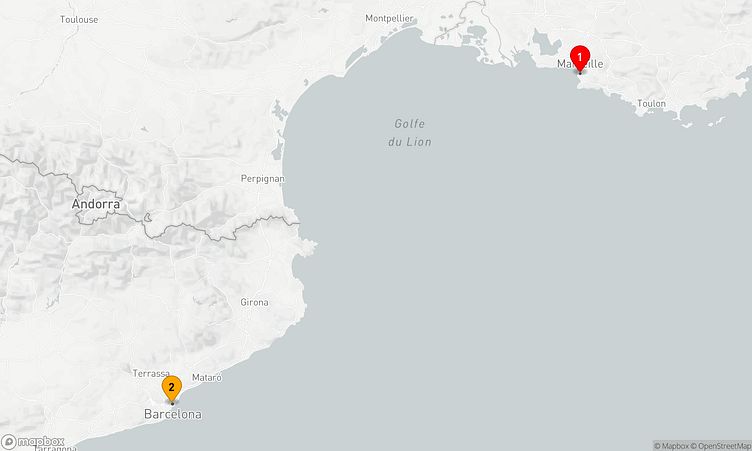 Ihre Reise startet in Marseille (Frankreich) am 19. Oktober 2026. Nach einem Tag erreichen Sie den Zielhafen Barcelona (Spanien), wo Ihre Kreuzfahrt endet.