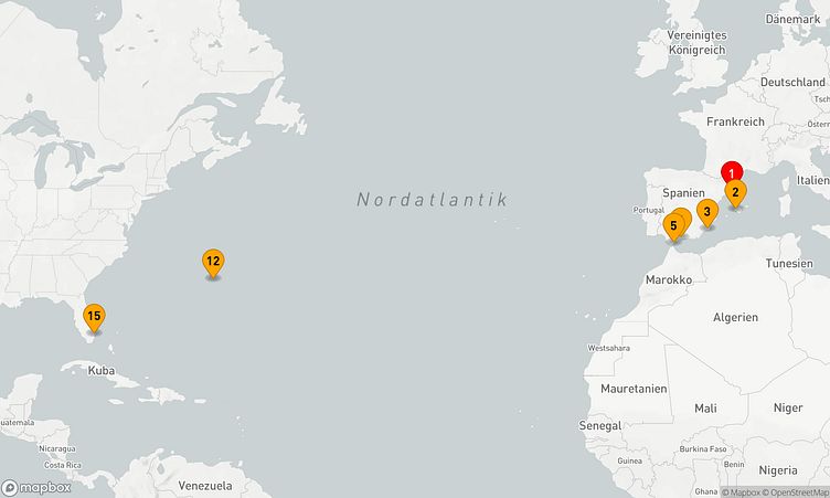 Am 10. November 2026 starten Sie in Barcelona (Spanien) und legen nach 14 Tagen am 24. November 2026 in Fort Lauderdale (Vereinigte Staaten) wieder an.