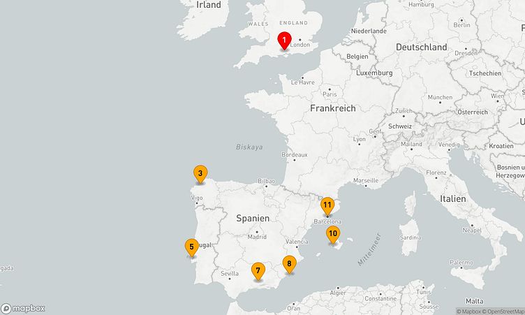 Auf Ihrer Reise besuchen Sie unter anderem die Häfen von Southampton, La Coruña und Granada, wo spannende Eindrücke von Land und Kultur auf Sie warten.