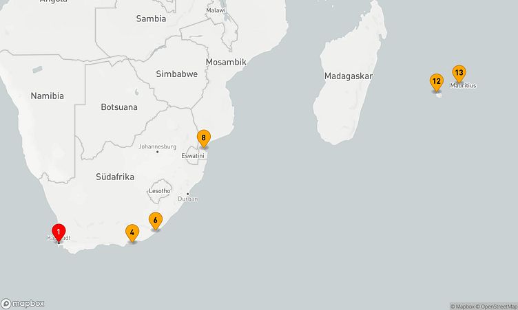 Ihr Abenteuer beginnt am 08. Dezember 2027 in Kapstadt (Südafrika). Nach 14 Tagen erreichen Sie den Zielhafen Port Louis (Mauritius), wo Ihre Reise endet.