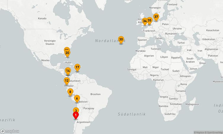 Von San Antonio (Chile) aus brechen Sie am 28. Februar 2027 auf, um nach 36 Tagen den Zielhafen Hamburg (Deutschland) zu erreichen, wo Ihre Reise endet.