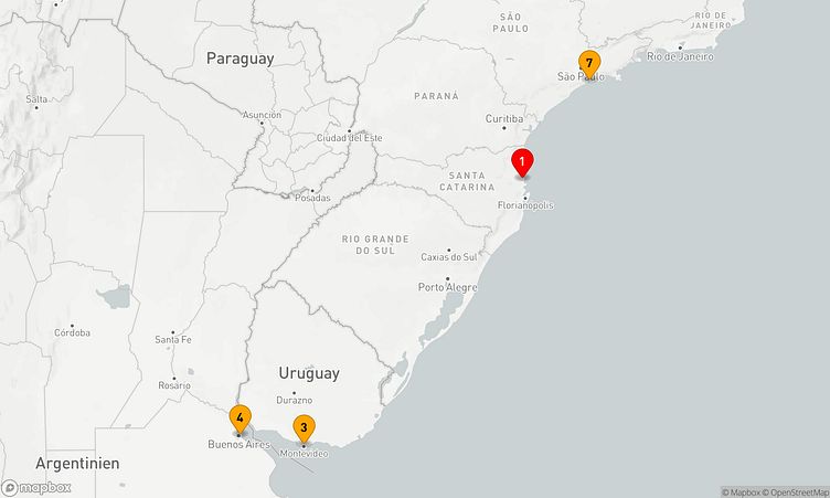 Ihre Route führt Sie unter anderem zu den faszinierenden Häfen von Balneário Camboriú, Montevideo und Buenos Aires, wo Sie die besondere Atmosphäre und das lokale Leben hautnah erleben können.