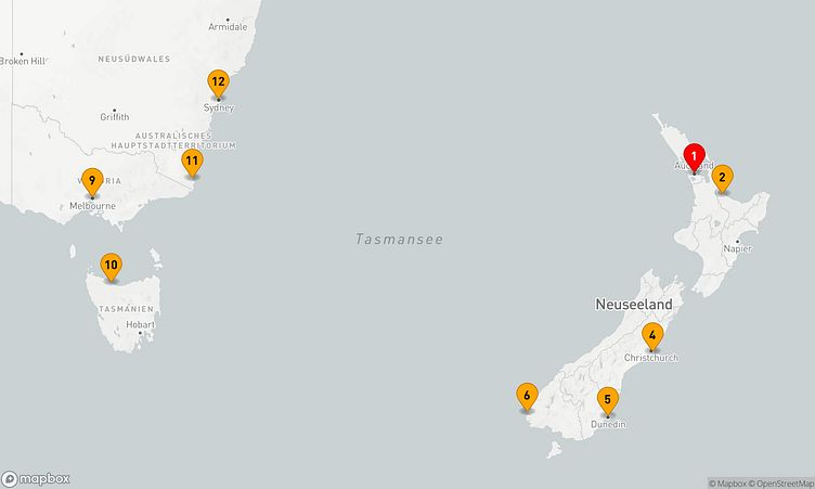 Auf Ihrer Reise besuchen Sie unter anderem die Häfen von Auckland, Lyttelton und Melbourne Victoria, wo spannende Eindrücke von Land und Kultur auf Sie warten.