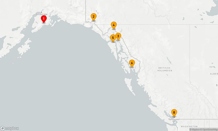Die Reiseroute startet am 21. Mai 2027 in Seward (USA) und führt Sie vom 21. Mai 2027 bis zum 28. Mai 2027 (7 Tage) nach Vancouver (Kanada).