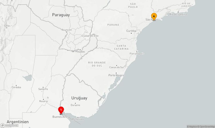 Ihre Reise beginnt am 11. März 2027 in Buenos Aires (Argentinien). Nach drei Tagen erreichen Sie den Zielhafen Santos (Brasilien), wo Ihre Kreuzfahrt endet.