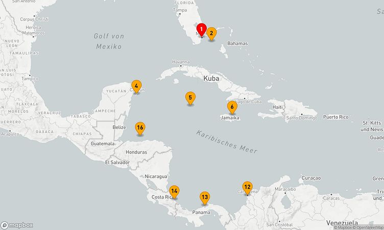 Auf dieser Reise erwarten Sie Stopps in den Häfen von Miami, George Town und Cartagena (CO), wo Sie lokale Highlights und unvergessliche Eindrücke sammeln.