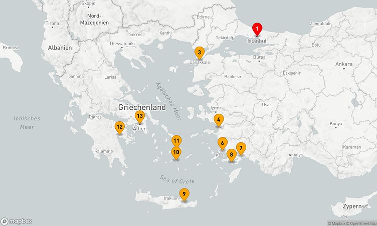 Auf dieser Reise erwarten Sie Stopps in den Häfen von Istanbul, Dardanellen (Passage) und Marmaris, wo Sie lokale Highlights und unvergessliche Eindrücke sammeln.
