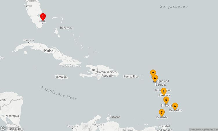 Auf der Route besuchen Sie unter anderem die Häfen von Fort Lauderdale, Basseterre und Bridgetown, um das spezielle Flair und die Besonderheiten der jeweiligen Orte kennenzulernen.