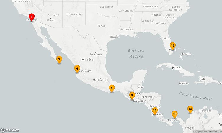 Auf dieser Route erwarten Sie Stopps in den Häfen von San Diego, Puerto Vallarta und Puntarenas, wo Sie lokale Sehenswürdigkeiten entdecken und unvergessliche Momente erleben können.