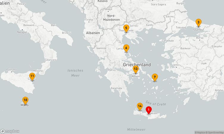 Startpunkt ist Heraklion (Griechenland) am 06. August 2027. Nach 14 Tagen erreichen Sie wieder den Zielhafen Heraklion (Griechenland), wo Ihre Reise endet.