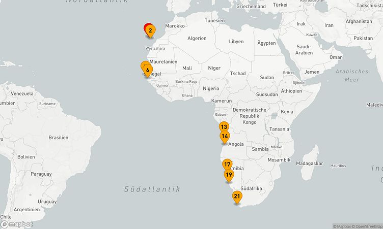 Ihre Route führt Sie zu den beeindruckenden Häfen von Santa Cruz de Tenerife, Banjul und weiteren faszinierenden Zielorten, wo Sie die lokale Atmosphäre und das Alltagsleben hautnah erleben können.