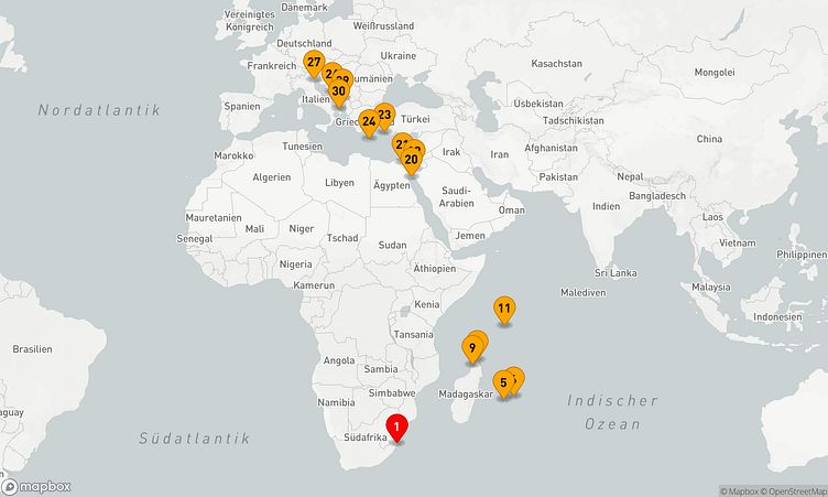 Auf Ihrer Reise besuchen Sie unter anderem die Häfen von Durban, Nosy Be und Suezkanal, wo spannende Eindrücke von Land und Kultur auf Sie warten.