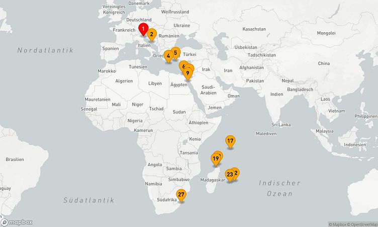 Auf Ihrer Reise besuchen Sie unter anderem die Häfen von Durban, Antsiranana (Diego-Suarez) und Scharm El-Scheich, wo spannende Eindrücke von Land und Kultur auf Sie warten.