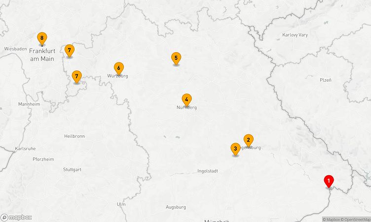 Während der Route besuchen Sie unter anderem die Häfen von Passau, Regensburg und Bamberg, um in das einzigartige Flair und die Besonderheiten der Region einzutauchen.