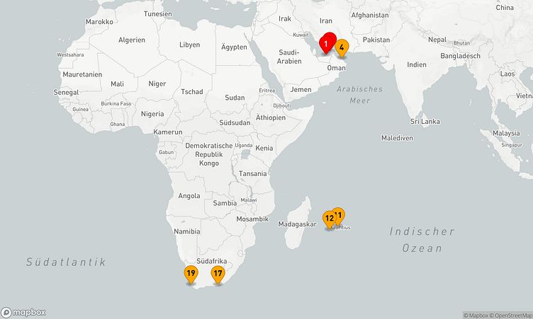 Auf der 19-tägigen Route „Von Dubai über Mauritius nach Kapstadt 2“ erwartet Sie eine unvergessliche Transreisen-Kreuzfahrt mit eindrucksvollen Landschaften und faszinierenden Eindrücken.