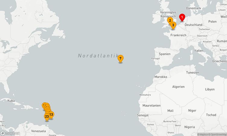 Sie starten Ihre 24-tägige Reise am 19. November 2025 in Rotterdam (Niederlande) und erreichen den Zielhafen Fort-de-France (Martinique) am 13. Dezember 2025.