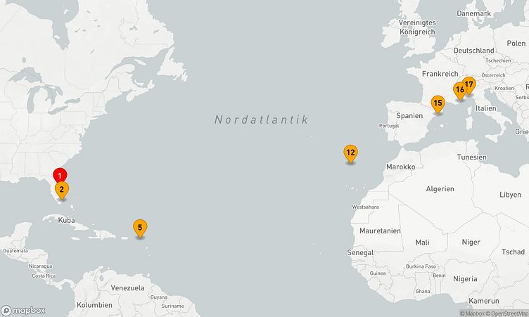 Diese 16-tägige Kreuzfahrt „Von Florida bis zur Côte d'Azur: Eine unvergessliche Reise der Entdeckung“ kombiniert Erholung und spannende Eindrücke - ein Transreisen Erlebnis für Entdecker.