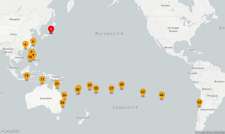 Ihre Reise beginnt in Tokyo (Japan) am 18. Oktober 2026 und führt Sie in 51 Tagen zum Zielhafen San Antonio (Chile), wo Ihre Kreuzfahrt endet.