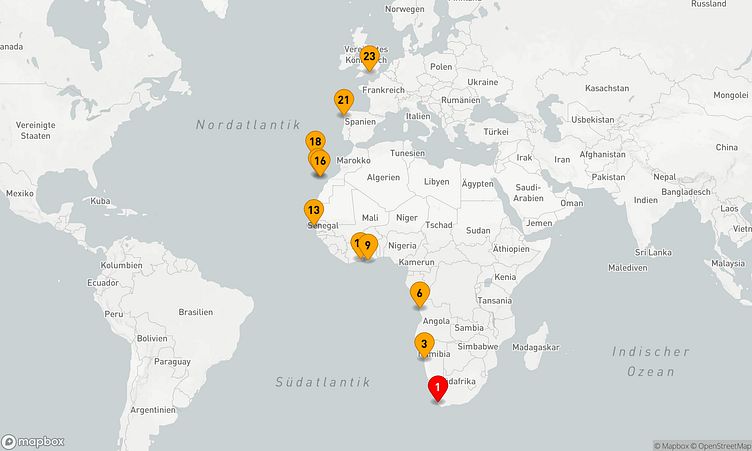 Auf Ihrer Reise besuchen Sie unter anderem die Häfen von Kapstadt, Luanda und Dakar, wo spannende Eindrücke von Land und Kultur auf Sie warten.