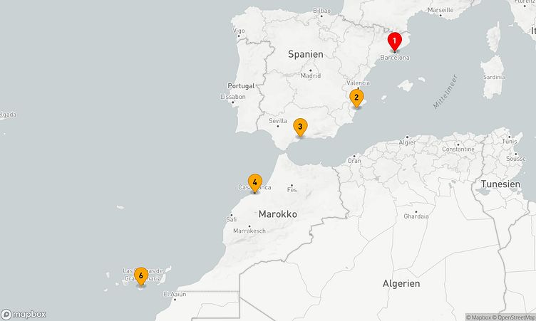 Erleben Sie eine 5-tägige Westliches Mittelmeer-Kreuzfahrt „Von Katalonien nach Kanaren - Mediterrane Entdeckungsreise“, die Sie auf eine vielseitige Route voller faszinierender Eindrücke und unvergesslicher Momente mitnimmt.
