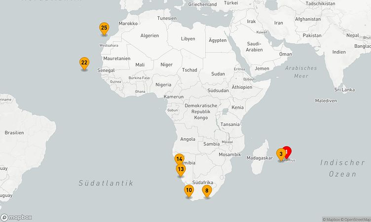 Ihre Route führt Sie unter anderem zu den faszinierenden Häfen von Kapstadt, Kapstadt und Port Elizabeth, wo Sie die Atmosphäre und das Leben vor Ort spüren können.
