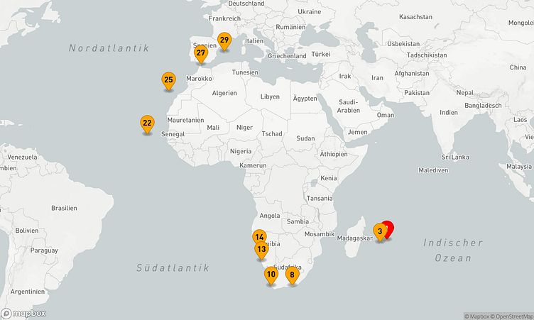 Am 03. März 2026 starten Sie in Port Louis (Mauritius) und legen nach 28 Tagen am 31. März 2026 in Palma de Mallorca (Spanien) wieder an.