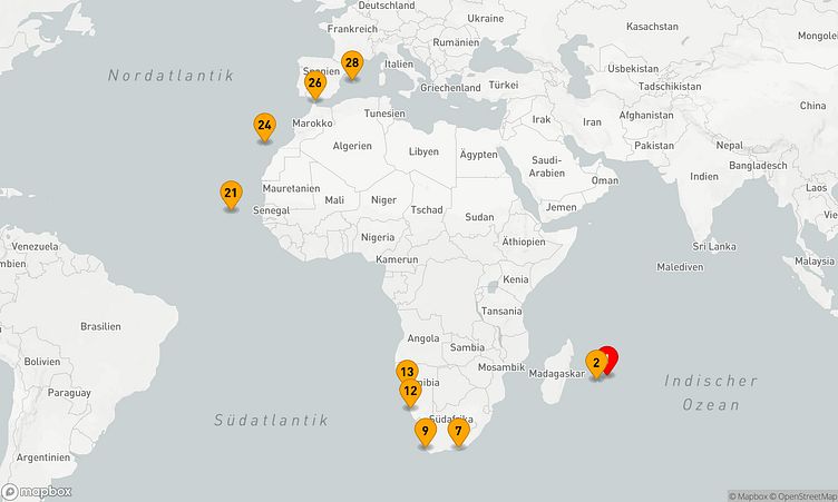 Auf dieser Route legen Sie in Häfen wie Port Louis, Port Elizabeth und Lüderitz an, um die lokale Atmosphäre und die besonderen Merkmale der Regionen hautnah zu erleben.
