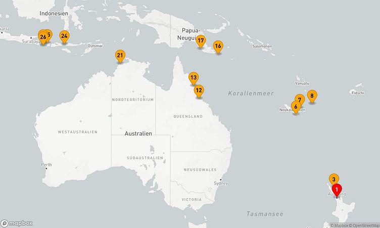 Von Neuseeland bis Indonesien