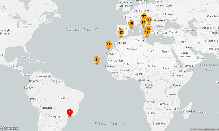 Auf dieser Reise erwarten Sie Stopps in den Häfen von Santos, Gran Canaria und Rom / Civitavecchia, wo Sie lokale Highlights und unvergessliche Eindrücke sammeln.