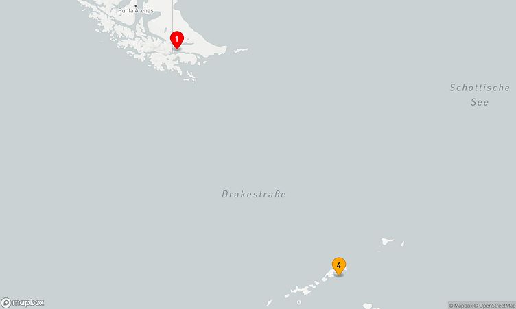 Freuen Sie sich auf Anläufe in Häfen wie Ushuaia, Südliche Shetlandinseln und {{{routePortName3}}}, die Ihnen authentische Einblicke und besondere Erlebnisse bieten.