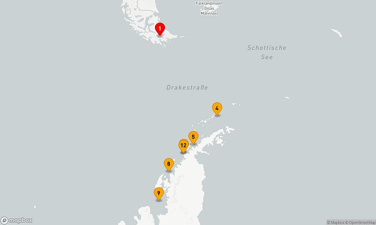 Während der Fahrt besuchen Sie unter anderem die Häfen von Ushuaia, die Südlichen Shetlandinseln und weitere faszinierende Orte, die Ihnen einzigartige Entdeckungen und spannende Einblicke ermöglichen.