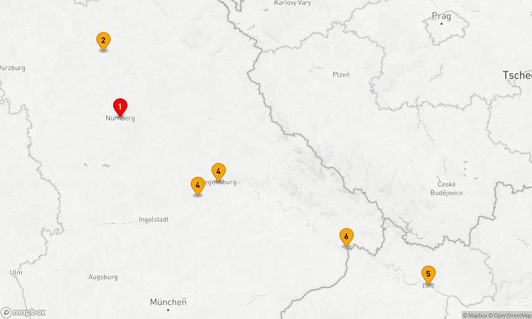 Ihre Route führt Sie unter anderem zu den faszinierenden Häfen von Nürnberg, Bamberg und Kelheim, wo Sie die Atmosphäre und das Leben vor Ort spüren können.