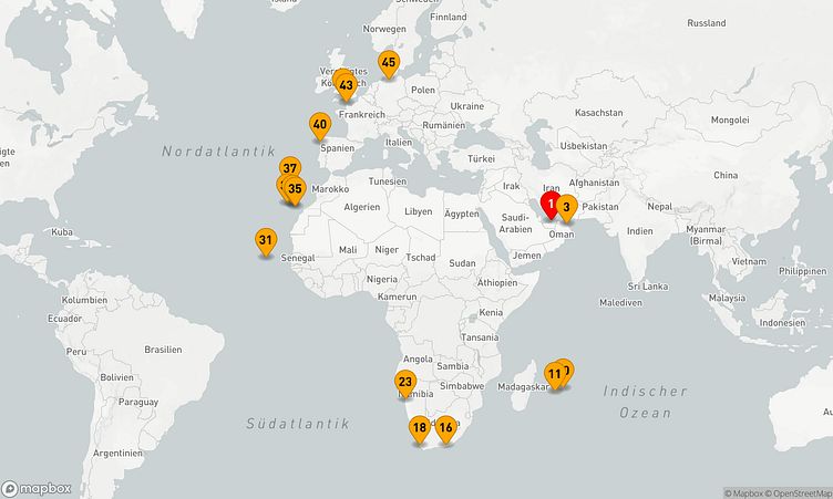 Häfen wie Abu Dhabi, Le Port La Reunion und Praia bieten Ihnen die Möglichkeit, die faszinierende Region auf eine besondere Art zu erkunden und Neues zu entdecken.
