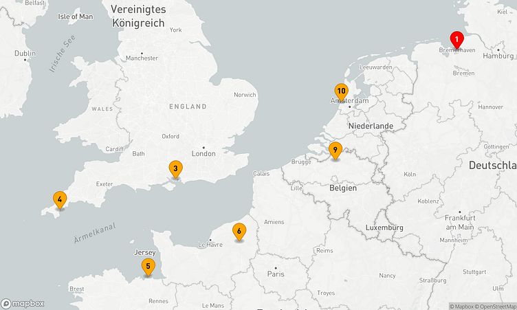 Diese Kreuzfahrt führt Sie zu den beeindruckenden Häfen von Bremerhaven, Falmouth und Rouen, die mit einzigartigen Sehenswürdigkeiten und lebendigen Eindrücken auf Sie warten.