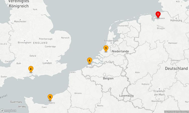Auf dieser Reise halten Sie unter anderem in den Häfen von Bremerhaven, Rotterdam und Le Havre (Paris) – spannende Eindrücke und einzigartige Entdeckungen sind garantiert.