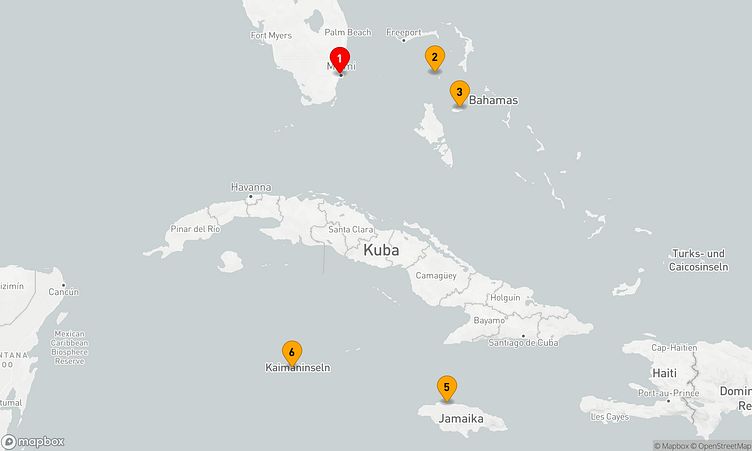 Während Ihrer Reise besuchen Sie unter anderem die Häfen von Miami, Coco Cay und Falmouth, wo Ihnen faszinierende Einblicke in Land und Kultur begegnen.