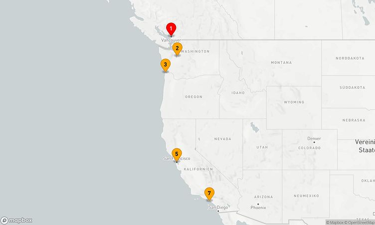 Auf dieser Reise erwarten Sie Stopps in den Häfen von Vancouver, Seattle und Astoria, wo Sie lokale Highlights und unvergessliche Eindrücke sammeln.