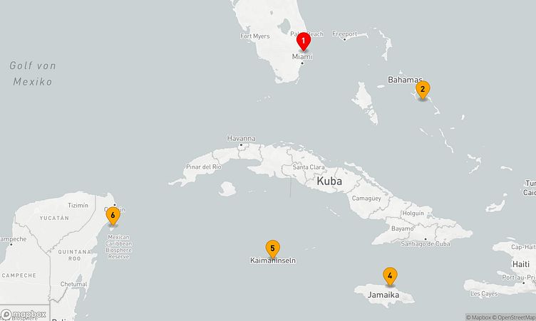 An Häfen wie Fort Lauderdale, Half Moon Cay und Grand Cayman haben Sie die Chance, die Region auf eine besondere Art zu erkunden und spannende Entdeckungen zu machen.