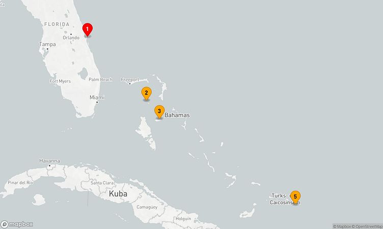 Der Start Ihrer Reise ist am 18. Juli 2026 in Port Canaveral (Vereinigte Staaten). Über 6 Tage führt Sie die Route bis zu Ihrem Zielhafen, Port Canaveral (Vereinigte Staaten), wo Sie am 24. Juli 2026 ankommen.