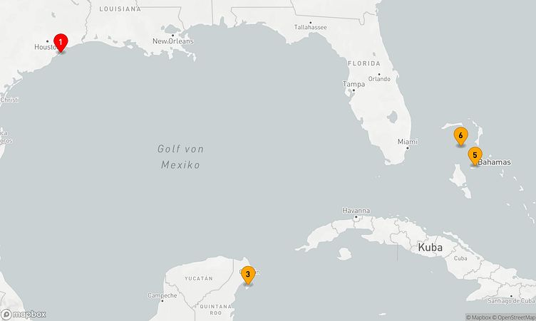 Auf dieser Reise erwarten Sie Stopps in den Häfen von Galveston, Cozumel und Coco Cay, wo Sie lokale Highlights und unvergessliche Eindrücke sammeln.