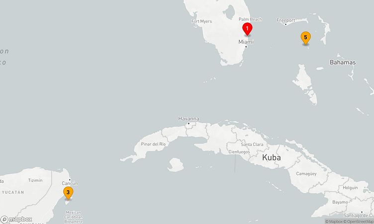 Ihre Route führt Sie zu den faszinierenden Häfen von Fort Lauderdale, Cozumel und Coco Cay, wo Sie die lokale Atmosphäre und das lebendige Treiben vor Ort spüren können.