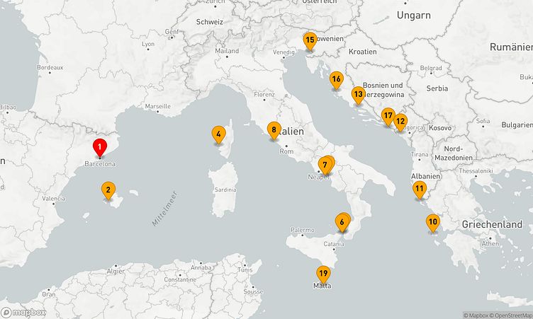 In Häfen wie Barcelona, der Straße von Messina und Kefalonia haben Sie die Möglichkeit, die Region auf besondere Weise zu erkunden und Neues zu entdecken.
