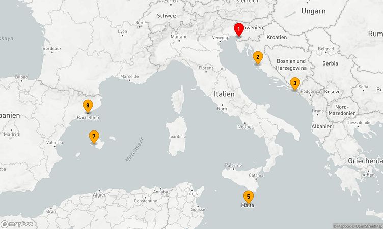 Nach Ihrem Start am 08. Juni 2026 in Triest (Italien) führt Sie die Route über 7 Tage bis zu Ihrem Zielhafen Barcelona (Spanien), wo Sie am 15. Juni 2026 ankommen.