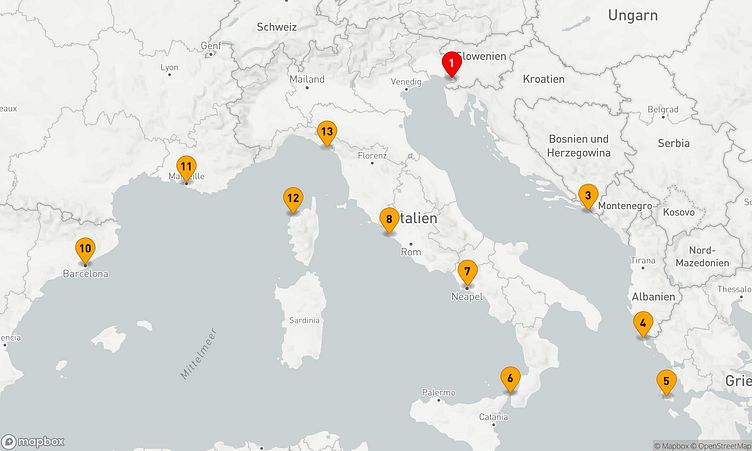 Die Reiseroute beginnt am 25. Juni 2027 in Triest (Italien) und führt sie vom 25. Juni 2027 bis zum 09. Juli 2027 (14 Tage) nach Rom / Civitavecchia (Italien).