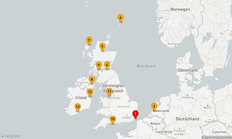 Während der Route halten Sie unter anderem in den Häfen von Dover, Invergordon und Glasgow (Greenock), um in das Flair und die Besonderheiten der Umgebung einzutauchen.