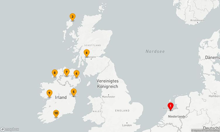 Auf dieser Reise erwarten Sie Stopps in den Häfen von Amsterdam, Belfast und Greencastle, wo Sie lokale Highlights und unvergessliche Eindrücke sammeln.