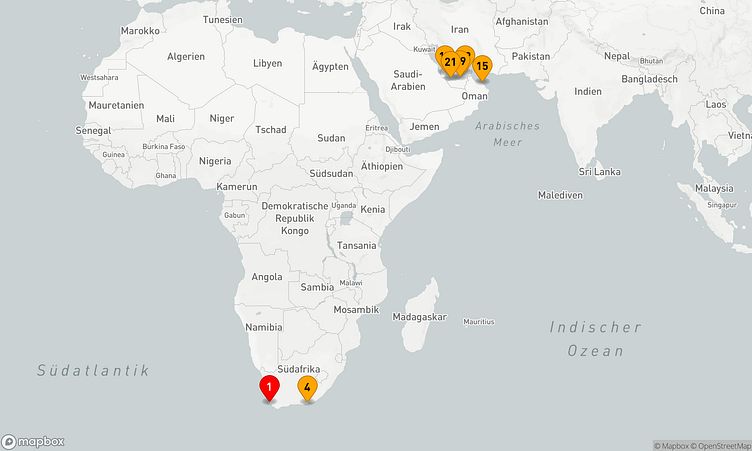 Ihre Reise beginnt in Kapstadt (Südafrika). Am 24. Oktober 2026 legen Sie ab und erreichen nach 22 Tagen, am 15. November 2026, den Zielhafen Dubai (Vereinigte Arabische Emirate).